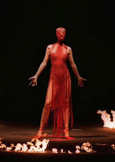 Ses défilés sont particulièrement théâtraux et dramatiques. Il n’est pas le premier ni le seul à avoir su transformer le cat walk en spectacle mais personne n’a su inspirer autant d’émotions avec des vêtements que McQueen. D’ailleurs, c’est sur un corps en mouvement que ses créations prennent vie. Aplaties en un étalage de pixels, ses vêtements perdent une dimension qui leur est indispensable. Ses créations ont besoin d’être portées pour exister tout à fait.