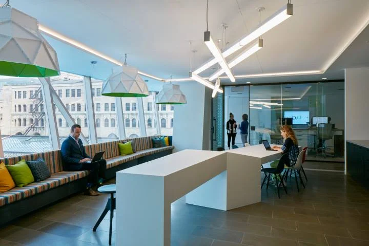Efforcez-vous de favoriser des interactions et une communication animées. Fournir à la fois des zones calmes, plus privées et des salles de réunion originales. Ce type de conception est le plus susceptible de cultiver des idées, la collaboration, la socialisation et l'innovation. N'hésitez pas à être audacieux et non conventionnel. Un bureau vraiment moderne ne ressemble en rien à l'espace de travail fade d'il y a seulement cinq ou dix ans. Les règles rigides de l'ancien ordre des affaires s'effondrent en présence d'une vision nouvelle et audacieuse.
