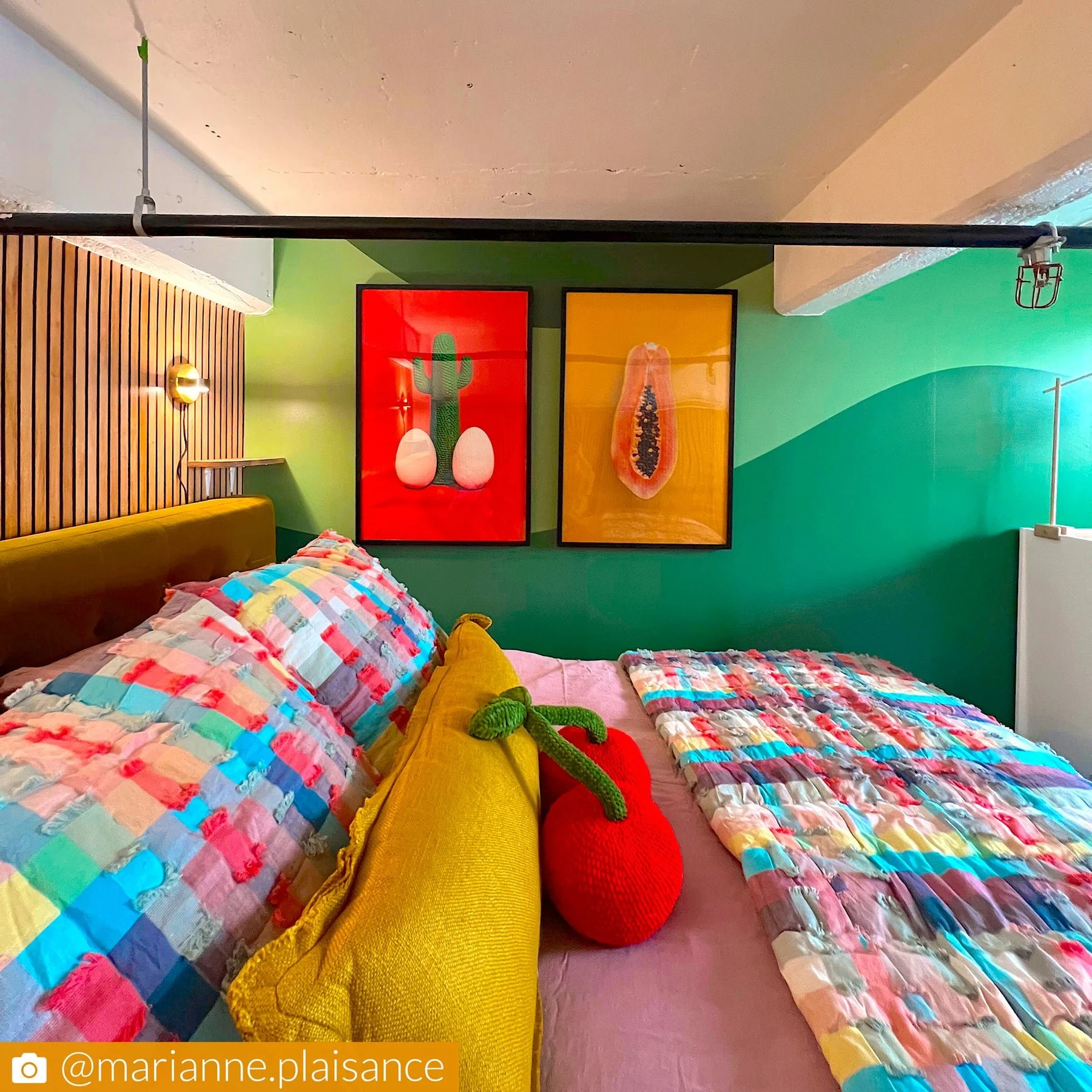 J’ai également été agréablement surprise de voir que la si cool et inspirante Marianne Plaisance (qui est l’idole absolue de ma nièce en passant) a conçu des produits pour eux, dont le papier peint autocollant Groovy qui se retrouve sur les murs de la chambre de notre ancienne covergirl Lysandre Nadeau.