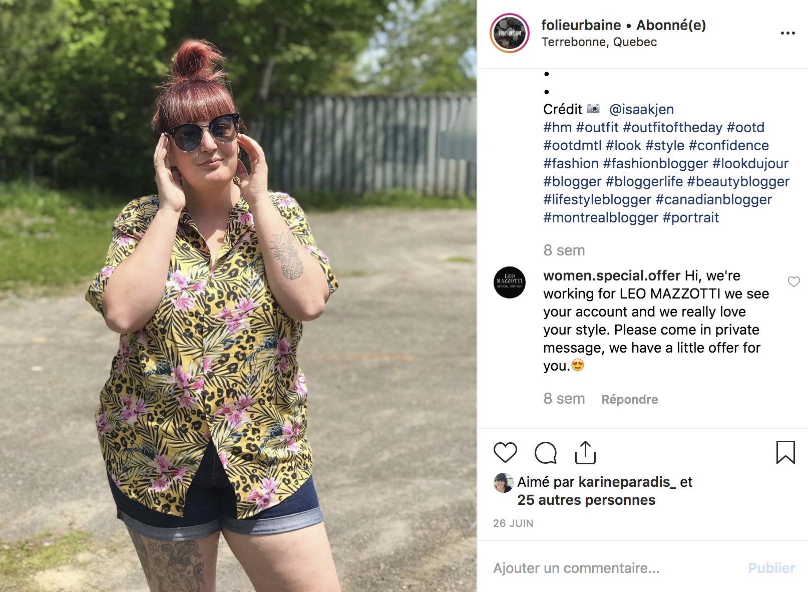 Quand j’étais avec mon ex, j’avais l’habitude de lui emprunter des chemises pour me faire des outfits. Un soir, en me rendant à un événement, j’avais chaud avec mon veston et j’avais échappé un peu de café dessus, je suis donc arrêtée au H&M pour me trouver un top. N’ayant rien trouvé du côté des femmes, je me suis rabattue sur le côté hommes et je suis tombée en amour avec une chemise. J’aime les vêtements over sized à la base, donc cette chemise est juste parfaite pour me créer des beaux looks en plus de m’apporter confort et satisfaction.