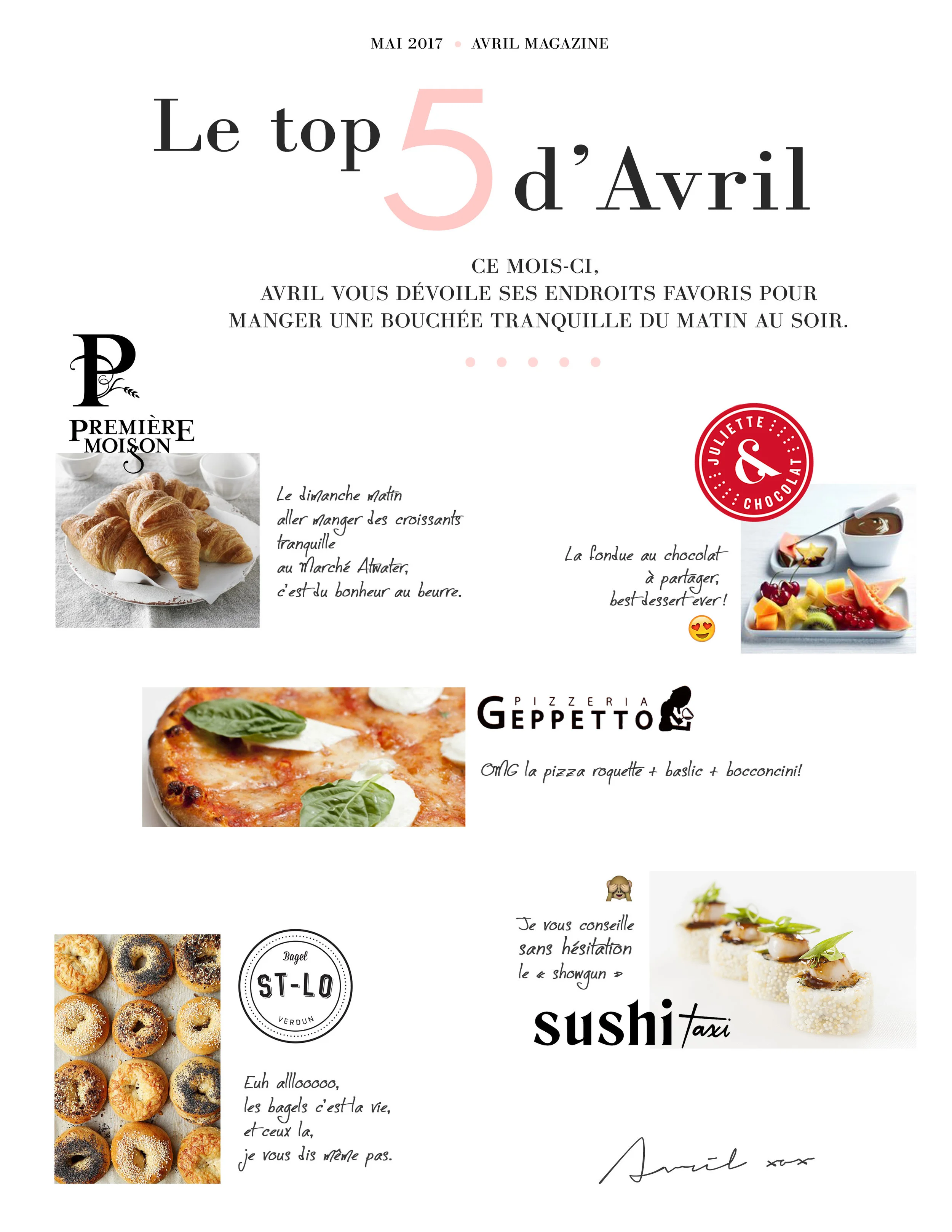 Le top 5 d'Avril - mai Et non je ne vous avais pas oubliés! Voici, un peu dernière minute, mais valide pour tout l'été 😉 mon top 5! Cette fois-ci je vous fais part de mes endroits tranquilles pour aller manger une bouchée peu importe l'heure de la journée 😃 Bon appétit! Lifestyle & fitnessAvril Magazine31 mai 2017nourriture, restaurant, mai 2017 Facebook0 Twitter Pinterest0 0 Likes